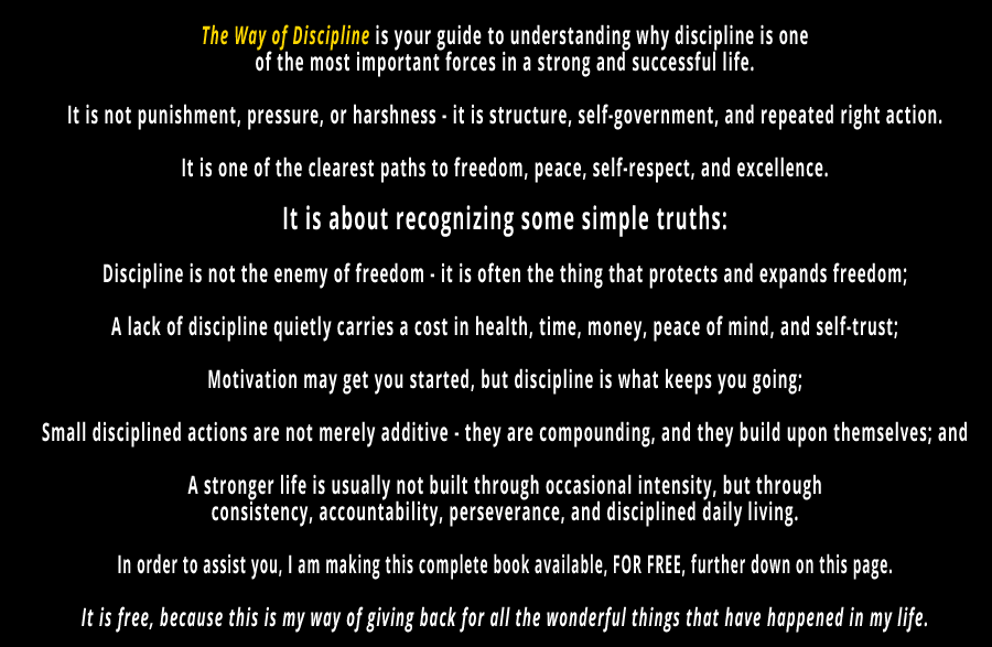 The central message of this book is simple: discipline is not something to resent. It is something to value, develop, and use wisely. Discipline is not the destruction of freedom. It is one of the ways freedom is built. Discipline is not the denial of life. It is one of the ways life becomes stronger, clearer, more stable, and more meaningful. Discipline is not a prison. Properly understood, it is a structure that supports growth.