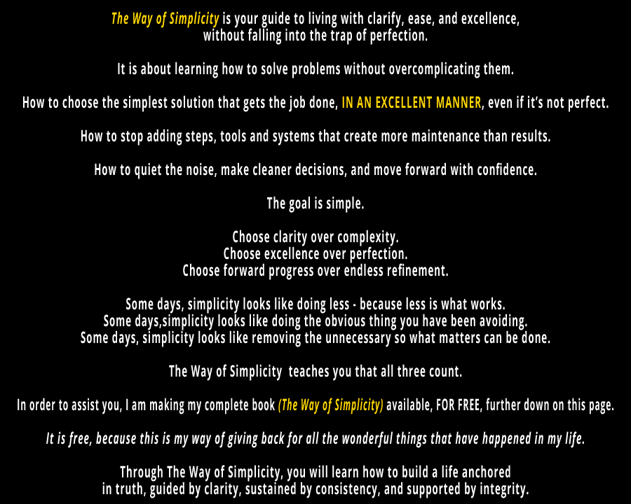 Simplicity is not laziness. It is not carelessness. It is not minimalism for its own sake. Simplicity is the discipline of choosing clarity, choosing what matters, and choosing the simplest solution that gets the job done, IN AN EXCELLENT MANNER, even if it is not perfect.