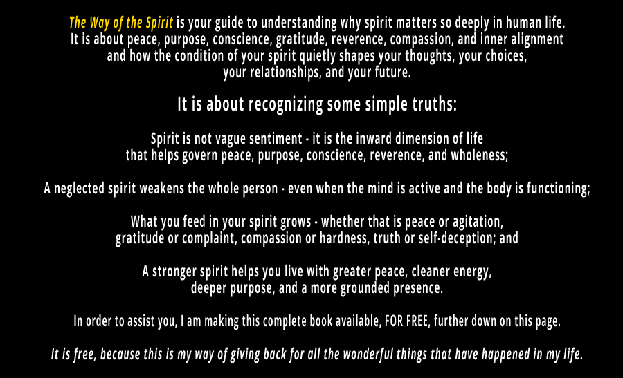 When I use the word spirit, I am not using it in a narrow sectarian sense. I am not reducing it to one tradition, one denomination, one label, or one vocabulary system. People use different language for the deepest part of the inward life. Some speak of spirit. Some speak of soul. Some speak of heart. Some speak of conscience. Some speak of the inner life. Different traditions emphasize different aspects of the same terrain.