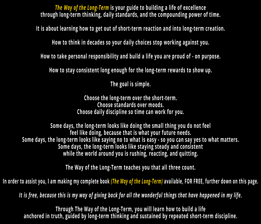 The long-term does not care about a single bad day. The long-term cares about a repeated standard. It cares about what you do most days, not what you do occasionally. It cares about the direction of your life, not the drama of a moment.