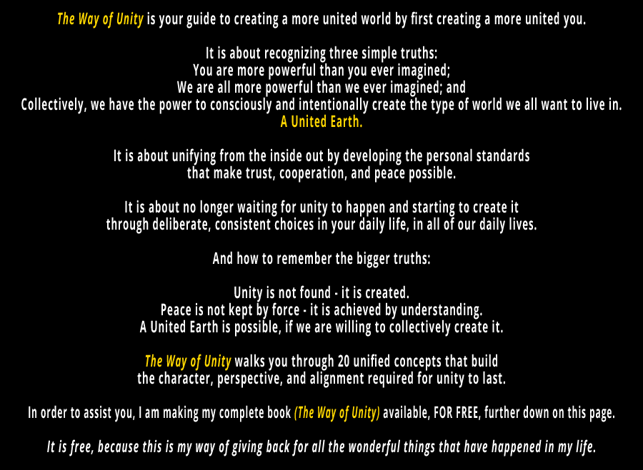 The way to unify the people of the Earth is for all of us to start running the same operating system. That operating system is The Way of Excellence (TWOE). It is a system of principles that strengthens the individual and, by doing so, strengthens society. It is not a political system. It is not a religion. It is an internal standard for how to think, how to act, and how to live.