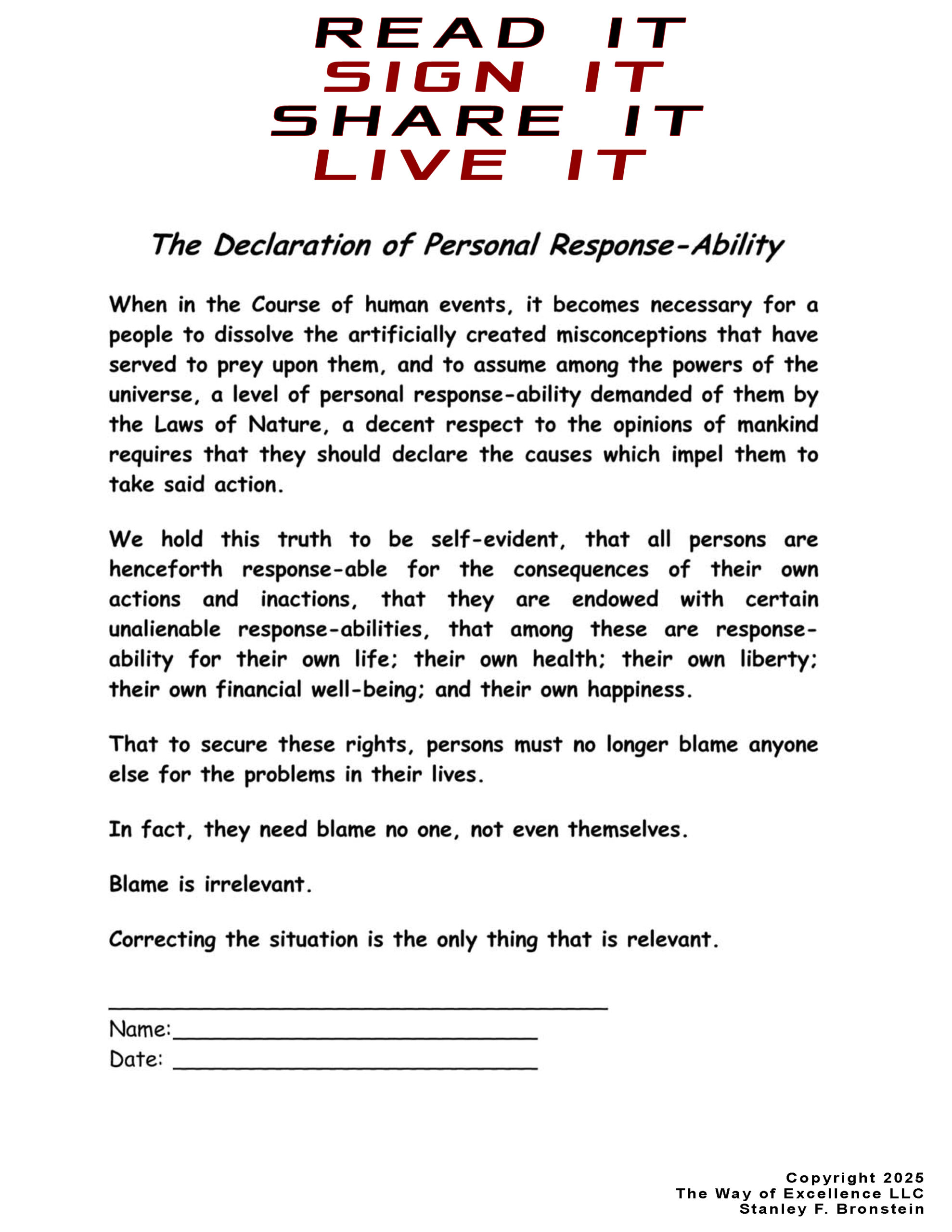 © 2020 - 2026 Stanley F. Bronstein & The Way of Excellence, LLC. All rights reserved, including but not limited to, rights to the terms